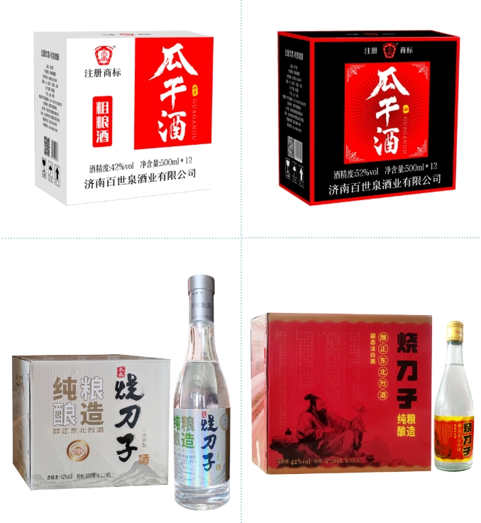 百世泉酒業(yè)推出地瓜燒,瓜干酒,燒刀子,口糧酒,清香茶酒等系列產(chǎn)品,歡迎廣大客戶朋友與我公司協(xié)商合作,共求進(jìn)步,共同發(fā)展。