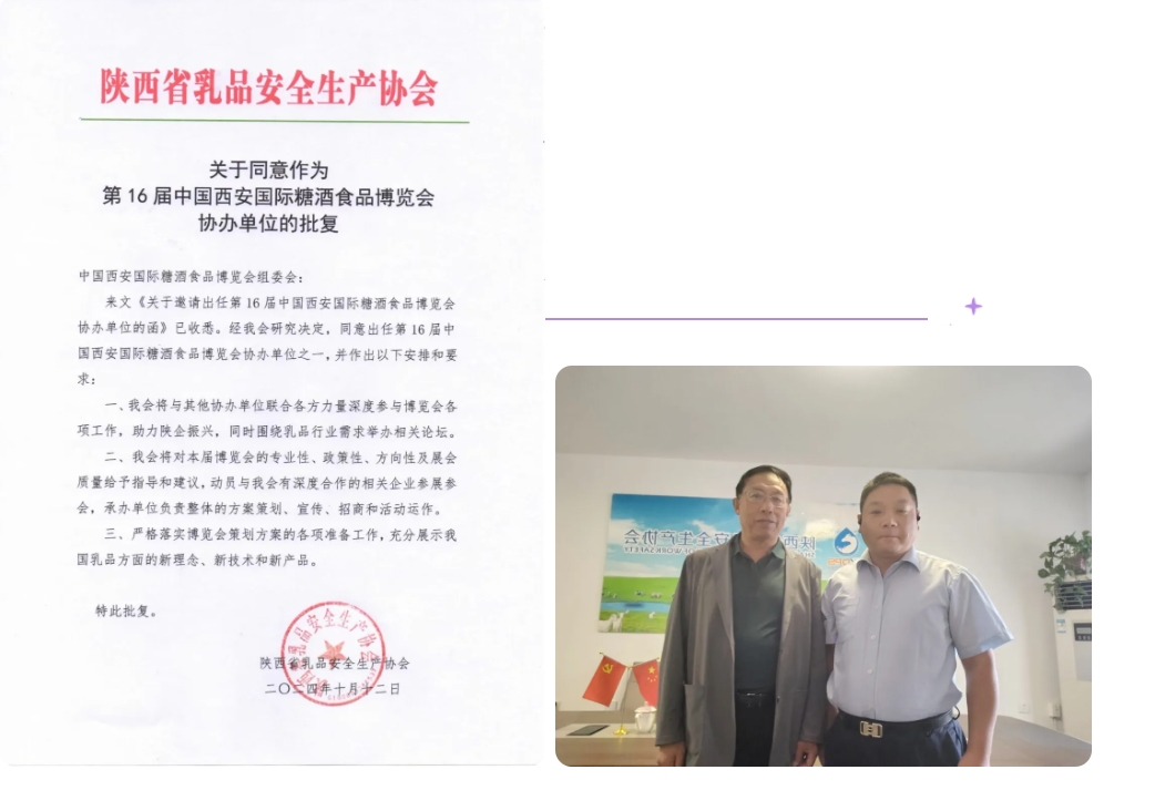 10月11日,秋意正濃,西安糖酒會的負責人一行前往陜西省乳品安全生產(chǎn)協(xié)會進行友好訪問。此次拜訪旨在加強雙方合作,共同推動乳品行業(yè)的繁榮發(fā)展。陜西省乳品安全生產(chǎn)協(xié)會副秘書長王偉民熱情接待了來訪的西安糖酒會團隊,并就未來的合作方向進行了深入交流。